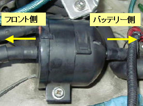 新品を取り付けます。 同じように黒いプラスチックのケースに入れて セットします。 黒いプラスチックのケースはついているモデルと ついていないモデルがあるようですが、 断熱効果を狙ったパーツかもしれません。 付いていないモデルの場合は購入してみてはいかがでしょうか? 最後に走行テストして燃料が漏れていなければOKです。 【フィルターの方向に注意】 取り付けに関して、方向に注意してください。 フィルターの方向を間違えないで下さい。 一度逆に取り付けて走行した場合は取り外して 新品を取り付けてください。 決して逆にして再利用しないで下さい。 |