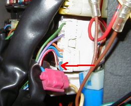 さて、コネクタを外して ドア連動への配線を開始します。 エレクトロタップを利用して まず、 あらかじめ用意した2本の電線を配線します。 |