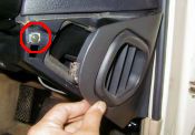 この運転席の足元のパネルを外します。 このパネルは赤丸の5箇所のネジで止められています。 このネジを外してください。 ![]() @のネジはこのパネルを外さなければなりませんが このパネルは「パカ」って取れます。ネジはありません。 |